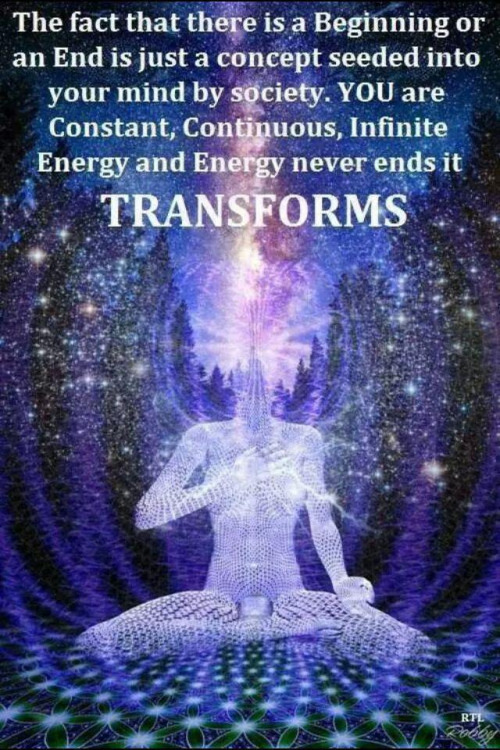 “The fact that there is a Beginning or an End is just a concept seeded into your mind by society. YOU are Constant, Continuous, Infinite Energy