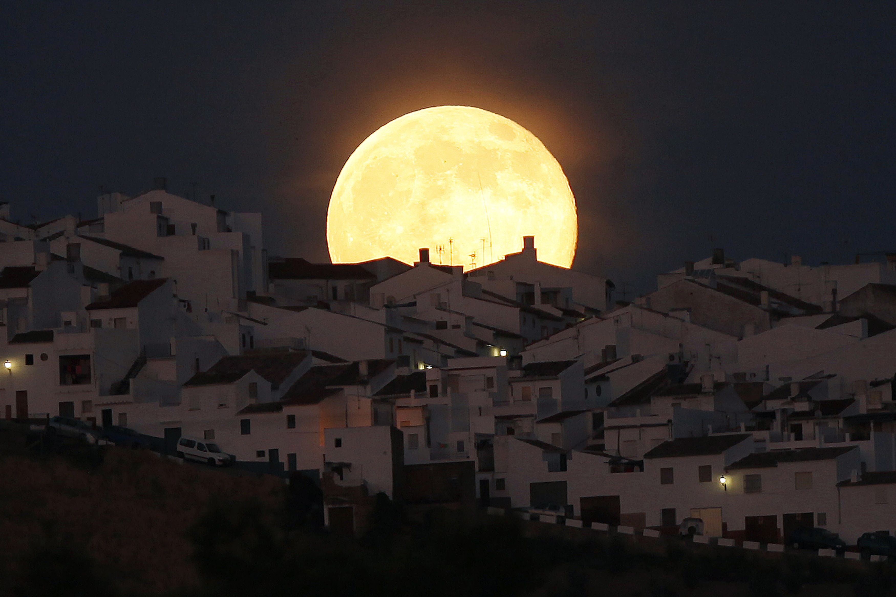 Stunning sunset! This happens because of a phenomenon called Rayleigh scattering: cirrus clouds scatter the longer, red wavelengths of light and give the sky an orange or reddish hue | source